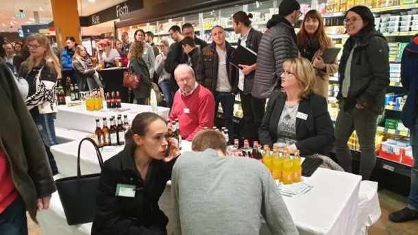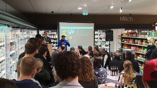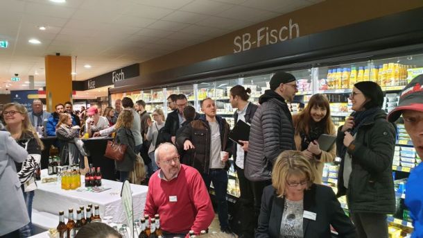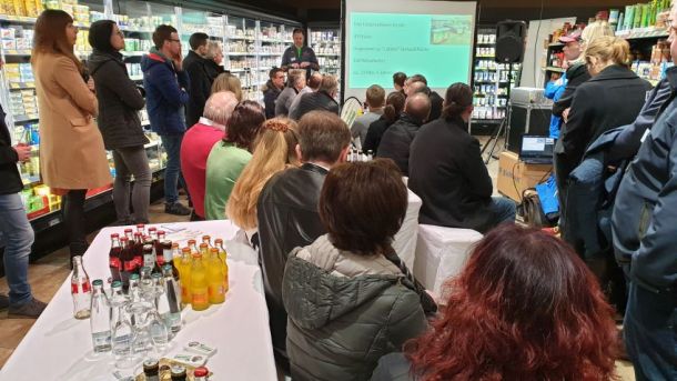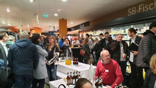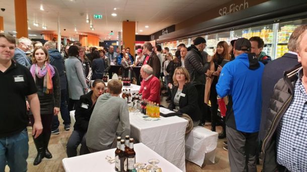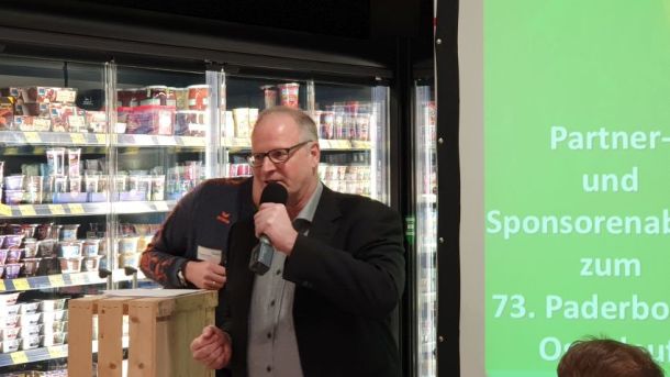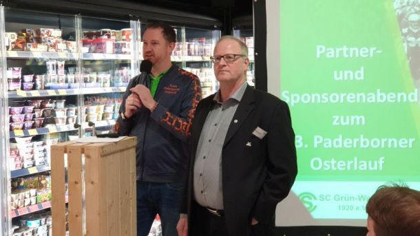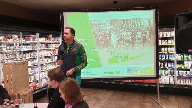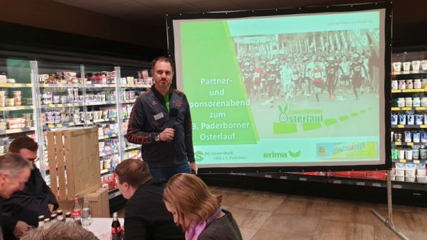 Rund 80 Unterstützer folgten der Einladung des SC Grün-Weiß Paderborn und des Osterlauf-Teams. Der erste Sponsorenabend für den Osterlauf 2019 bot ein spannendes Programm in einer außergewöhnlichen Location. In seiner 4.600 Quadratmeter großen Edeka-Filiale in Elsen wartete Geschäftsführer Daniel Windmann, der den Familienbetrieb in 4. Generation führt mit beeindruckenden Fakten zu seinem Unternehmen auf. An verschiedenen Stationen konnten sich die Gäste von der Vielfalt und Qualität seiner Angebote geschmacklich überzeugen lassen.